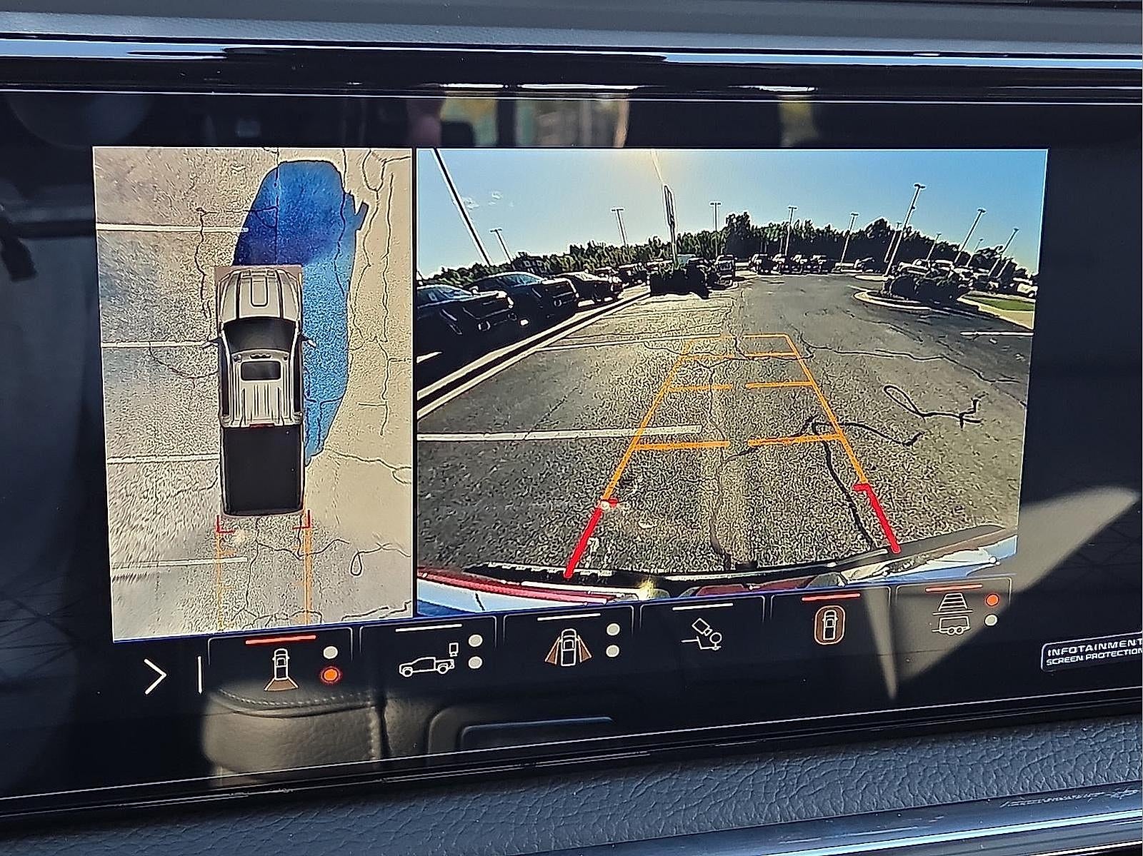 - Allows driver to see inside the cargo bed on the infotainment display to help with 5th wheel or gooseneck hitching and to check cargo