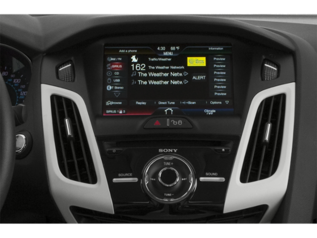 10 Speakers, 17 Sport Aluminum Wheels, 4-Wheel Disc Brakes, ABS brakes, Air Conditioning, Alloy wheels, AM/FM radio: SiriusXM, Automatic temperature control, Brake assist, Bumpers: body-color, CD player, Compass, Delay-off headlights, Driver door bin, Driver vanity mirror, Dual front impact airbags, Dual front side impact airbags, Electronic Stability Control, Exterior Parking Camera Rear, Four wheel independent suspension, Front anti-roll bar, Front Bucket Seats, Front Center Armrest, Front dual zone A/C, Front fog lights, Front reading lights, Fully automatic headlights, Heated door mirrors, Heated front seats, Heated Leather-Trimmed Sport Front Bucket Seats, Illuminated entry, Knee airbag, Leather Shift Knob, Leather steering wheel, Low tire pressure warning, Occupant sensing airbag, Outside temperature display, Overhead airbag, Overhead console, Panic alarm, Passenger door bin, Passenger vanity mirror, Power door mirrors, Power driver seat, Power steering, Power windows, Radio data system, Radio: AM/FM Single-CD/MP3-Capable, Rear anti-roll bar, Rear Parking Sensors, Rear window defroster, Remote keyless entry, Security system, SIRIUS Satellite Radio, Speed control, Spoiler, Steering wheel mounted audio controls, Tachometer, Telescoping steering wheel, Tilt steering wheel, Traction control, Trip computer, Turn signal indicator mirrors, Variably intermittent wipers. 2013 Ford Focus 6-Speed Automatic with Powershift 2.0L 4-Cylinder DGI DOHC Gray