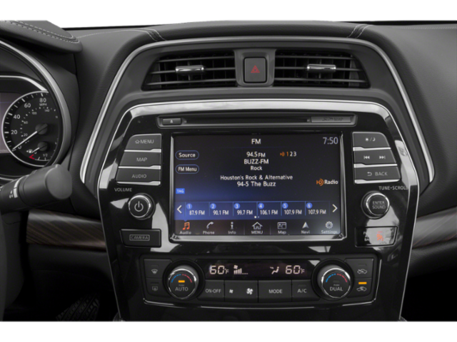 11 Speakers, 4-Wheel Disc Brakes, ABS brakes, Activation Disclaimer, Air Conditioning, Alloy wheels, AM/FM radio: SiriusXM, Anti-whiplash front head restraints, Apple CarPlay/Android Auto, Auto-dimming Rear-View mirror, Automatic temperature control, Blind Spot Warning, Brake assist, Bumpers: body-color, CD player, Compass, Delay-off headlights, Driver door bin, Driver vanity mirror, Dual front impact airbags, Dual front side impact airbags, Electronic Stability Control, Floor Mats/Trunk Mat & Trunk Net, Four wheel independent suspension, Front anti-roll bar, Front Bucket Seats, Front Center Armrest, Front dual zone A/C, Front fog lights, Front reading lights, Front Zero Gravity Heated Seats, Garage door transmitter: HomeLink, Heated door mirrors, Heated front seats, Heated steering wheel, Illuminated entry, Leather-Appointed Seat Trim, Low tire pressure warning, Navigation System, Occupant sensing airbag, Outside temperature display, Overhead airbag, Overhead console, Panic alarm, Passenger door bin, Passenger vanity mirror, Power door mirrors, Power driver seat, Power moonroof, Power passenger seat, Power steering, Power windows, Radio data system, Radio: AM/FM/HD/CD Audio System, Rear anti-roll bar, Rear reading lights, Rear seat center armrest, Rear window defroster, Remote keyless entry, Security system, Speed control, Speed-sensing steering, Speed-Sensitive Wipers, Split folding rear seat, Sport steering wheel, Steering wheel mounted audio controls, Tachometer, Telescoping steering wheel, Tilt steering wheel, Traction control, Trip computer, Turn signal indicator mirrors, Variably intermittent wipers, Wheels: 18 Machined Aluminum Alloy. 2018 Nissan Maxima CVT 3.5L V6 DOHC 24V Super Black