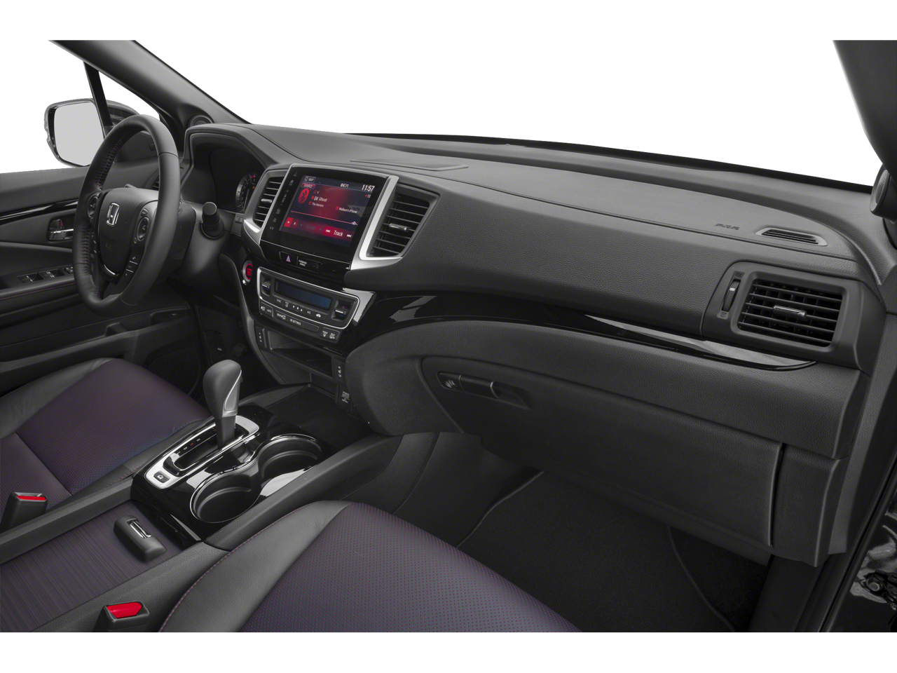 Black Leather, 4-Wheel Disc Brakes, 4.25 Axle Ratio, 8 Speakers, ABS brakes, Air Conditioning, Alloy wheels, AM/FM radio: SiriusXM, Apple CarPlay/Android Auto, Auto High-beam Headlights, Auto-dimming Rear-View mirror, Automatic temperature control, Blind Spot Information (BSI) System warning, Bluetooth® Hands-Free Link, Brake assist, Bumpers: body-color, Compass, Delay-off headlights, Driver door bin, Driver vanity mirror, Driver's Seat Mounted Armrest, Dual front impact airbags, Dual front side impact airbags, Electronic Stability Control, Exterior Parking Camera Rear, Forward collision: Collision Mitigation Braking System (CMBS) + FCW mitigation, Four wheel independent suspension, Front anti-roll bar, Front Bucket Seats, Front dual zone A/C, Front fog lights, Front reading lights, Fully automatic headlights, Garage door transmitter: HomeLink, Heated door mirrors, Heated Front Bucket Seats, Heated front seats, Heated steering wheel, Honda Satellite-Linked Navigation System, Illuminated entry, Lane departure: Lane Keeping Assist System (LKAS) active, Leather Seat Trim, Low tire pressure warning, Memory seat, Navigation system: Honda Satellite-Linked Navigation System, Occupant sensing airbag, Outside temperature display, Overhead airbag, Overhead console, Panic alarm, Passenger door bin, Passenger seat mounted armrest, Passenger vanity mirror, Power door mirrors, Power driver seat, Power moonroof, Power passenger seat, Power steering, Power windows, Radio data system, Radio: AM/FM/MP3 w/Nav System & Truck-Bed Audio, Rear air conditioning, Rear anti-roll bar, Rear reading lights, Rear seat center armrest, Rear step bumper, Rear window defroster, Remote keyless entry, Security system, SiriusXM Radio, Speed control, Speed-sensing steering, Split folding rear seat, Steering wheel mounted audio controls, Tachometer, Telescoping steering wheel, Tilt steering wheel, Traction control, Trip computer, Variably intermittent wipers, Wheels: 18 Exclusive Black-Painted Alloy, Black Leather. Recent Arrival!
