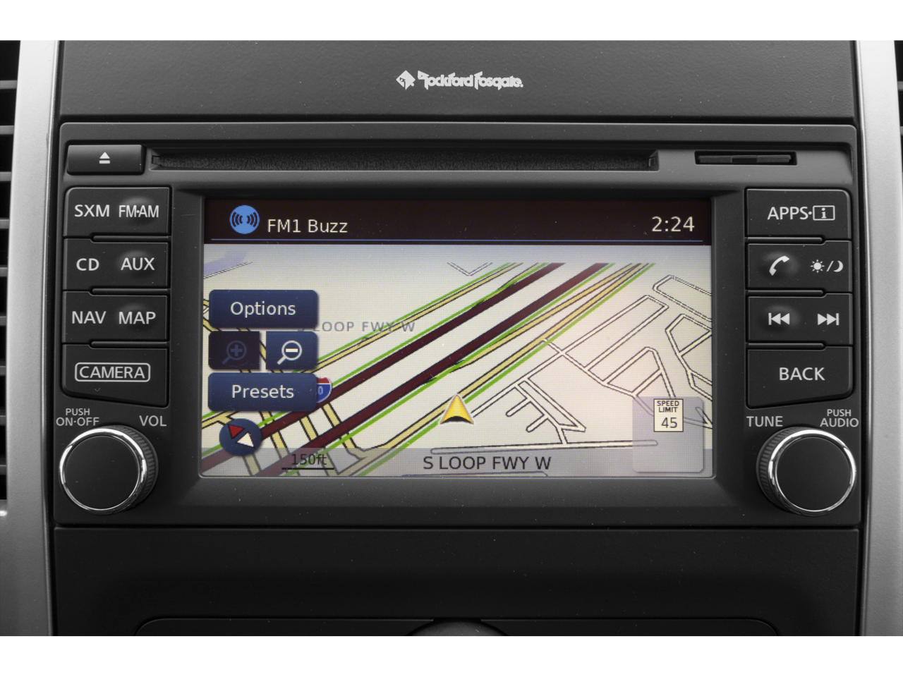 - Radio: Rockford Fosgate Premium Audio System -inc: CD player, 10 speakers w/subwoofer, NissanConnect w/navigation, 5.8" color touch screen display, Nissan Navigation System w/voice guidance, Nissan voice recognition for navigation and audio, SiriusXM satellite radio, SiriusXM traffic, SiriusXM travel link (fuel prices, weather, movie listings, stock info and sports), auxiliary input, steering wheel audio controls, USB connection port for iPod Interface and other compatible devices, streaming audio via Bluetooth®, Bluetooth® hands-free phone system, Siri Eyes Free and hands-free text messaging assistant