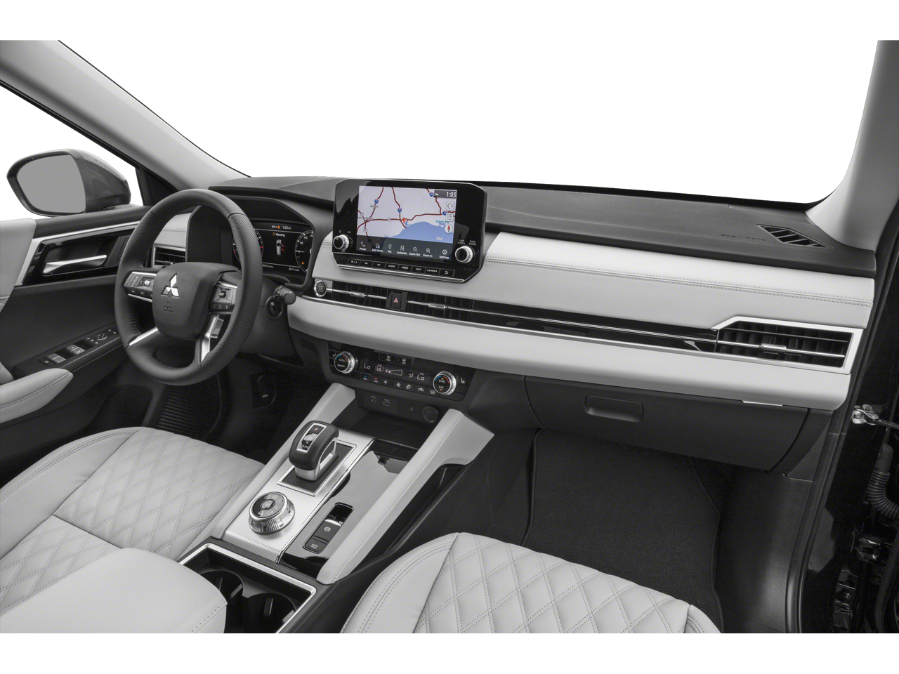 - Radio: AM/FM 9.0" Navigation w/Smartphone Link -inc: 6 speakers, Apple CarPlay, Google Android Auto, SXM all-access and SXM traffic and travel link w/90-day subscription, Mitsubishi Connect, HD Radio, smartphone wireless charger, Bluetooth® wireless technology, steering wheel controls for phone, audio and voice recognition and USB ports