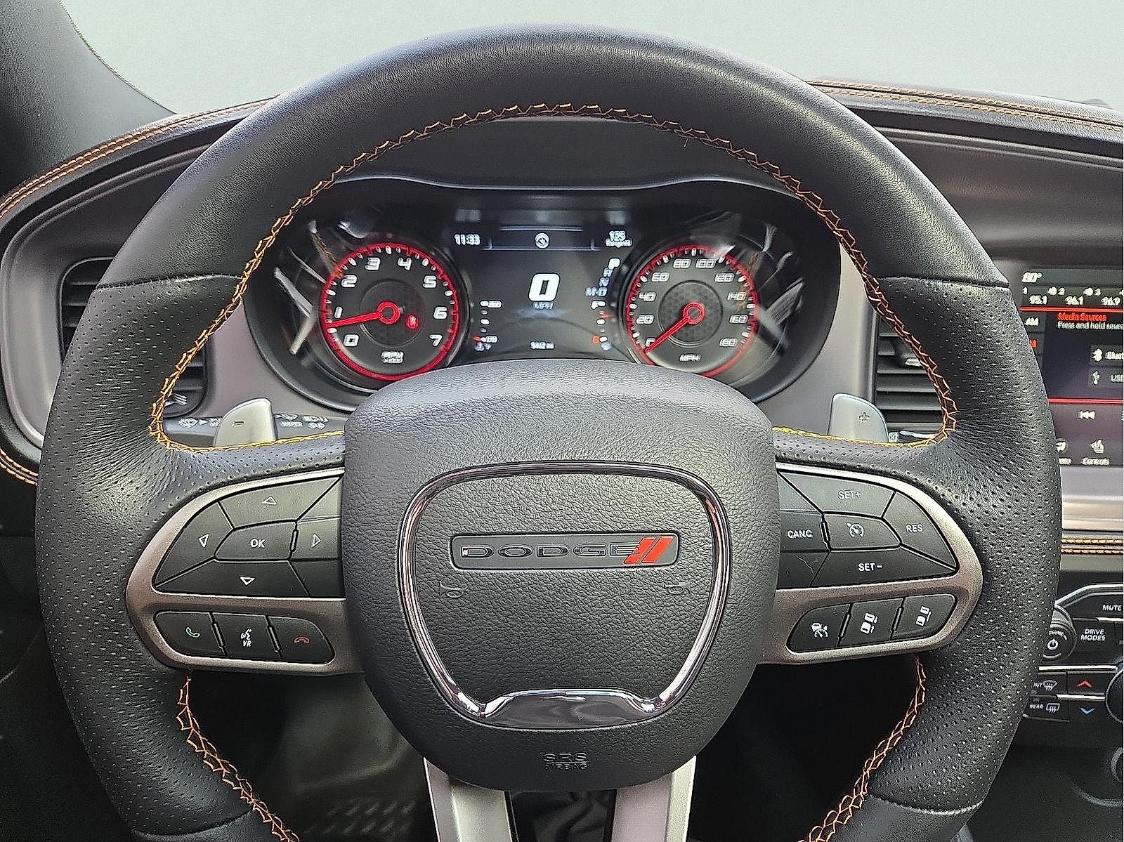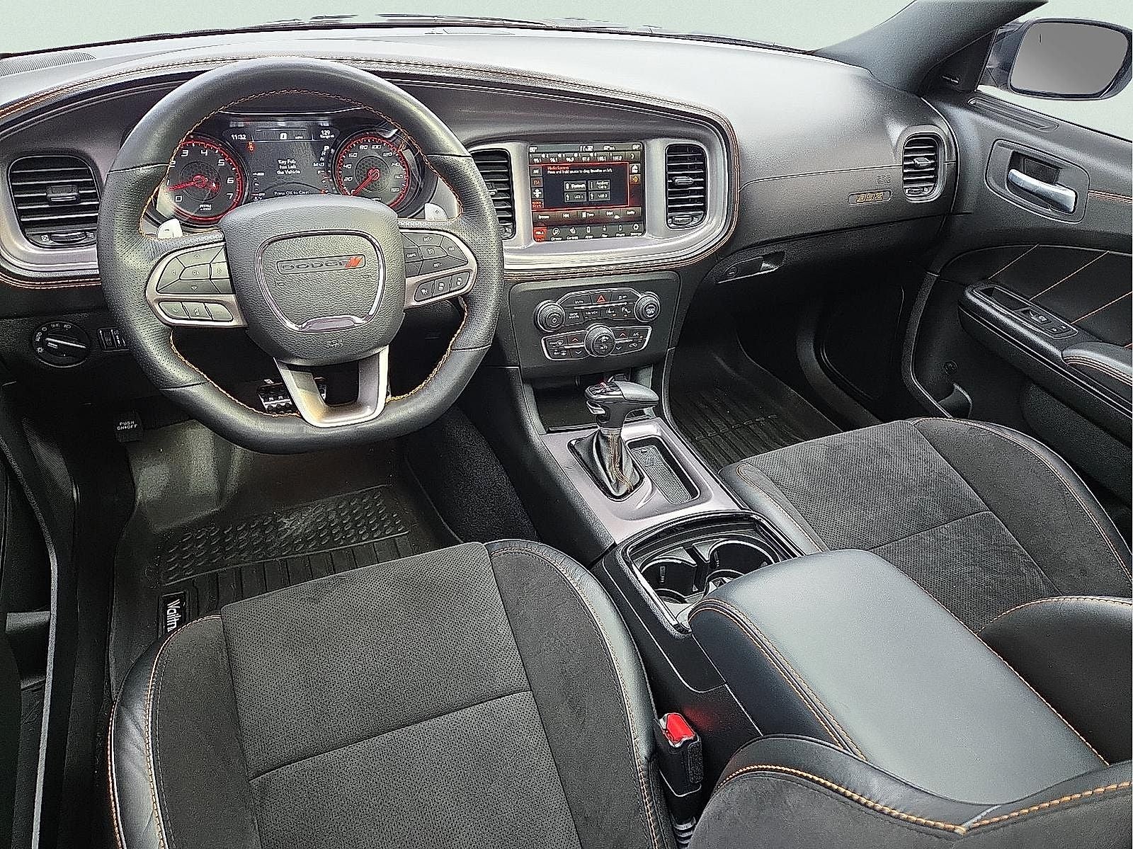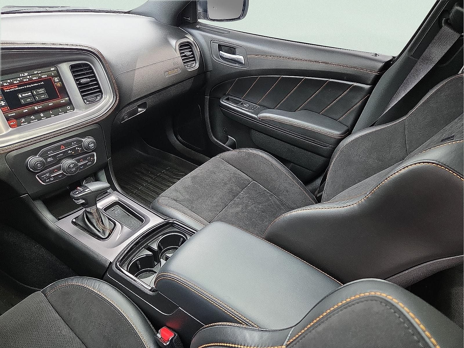 Black Artificial Leather, 1-Yr SiriusXM Guardian Trial, 19 harman/kardon GreenEdge Speakers, 2-Piece Shark Fin Antenna, 392 Fender Badge, 392 IP Badge, 4-Wheel Disc Brakes, 4G LTE Wi-Fi Hot Spot, 5-Year SiriusXM Traffic Service, 6 Speakers, 8.4 Touchscreen Display, ABS brakes, Adaptive Damping Suspension (DISC), Air Conditioning, Alloy wheels, AM/FM radio: SiriusXM, Anti-whiplash front head restraints, Apple CarPlay, Apple CarPlay/Android Auto, Auto-Dimming Exterior Driver Mirror, Auto-dimming Rear-View mirror, Automatic temperature control, Black Stripe w/Orange Tracer, Blind Spot & Cross Path Detection, Blind Spot Memory/Power/Heat Mirror, Body Color Fender Flares, Brake assist, Brembo 6-Pot Fixed Front Caliper Brakes, Bumpers: body-color, Cargo Net, Cloth Performance Seats w/Heat, Compass, Delay-off headlights, Driver door bin, Driver vanity mirror, Dual front impact airbags, Dual front side impact airbags, Electronic Stability Control, Emergency communication system: SiriusXM Guardian, Exterior Mirrors Courtesy Lamps, Exterior Mirrors w/Heating Element, Flat-Bottom Steering Wheel, For Details, Visit DriveUconnect.com, Four wheel independent suspension, Front anti-roll bar, Front Bucket Seats, Front Center Armrest, Front dual zone A/C, Front fog lights, Front Overhead LED Lighting, Front reading lights, Fully automatic headlights, Garage door transmitter: HomeLink, Gloss Black I/P Cluster Trim Rings, Google Android Auto, GPS Antenna Input, GPS Navigation, harman/kardon Audio Group, harman/kardon GreenEdge Amp, HD Radio, Heated door mirrors, Heated Front Seats, Heated front seats, Heated steering wheel, HEMI Orange Package, Illuminated entry, Integrated Center Stack Radio, Integrated Voice Command w/Bluetooth®, Knee airbag, Leather Shift Knob, Low tire pressure warning, Manufacturer's Statement of Origin, Media Hub (2 USB, AUX), Nappa/Alcantara Seats w/Logo, Navigation & Travel Group, Occupant sensing airbag, Orange Interior Accent Stitch, Outside temperature display, Overhead airbag, Overhead console, Panic alarm, ParkView Rear Back-Up Camera, Passenger door bin, Passenger vanity mirror, Performance Shift Indicator, Plus Group, Power 2-Way Driver Lumbar Adjust, Power 2-Way Passenger Lumbar Adjust, Power door mirrors, Power driver seat, Power Front Driver/Passenger Seats, Power steering, Power Sunroof, Power Tilt/Telescope Steering Column, Power windows, Premium-Stitched Dash Panel, Quick Order Package 21V Scat Pack Widebody, Radio: Uconnect 4C Nav w/8.4 Display, Radio: Uconnect 4C w/8.4 Display, Radio/Driver Seat/Mirrors Memory, Rear anti-roll bar, Rear Armrest w/Cupholder Seat, Rear reading lights, Rear seat center armrest, Rear window defroster, Remote keyless entry, Satin Black Dodge Tail Lamp Badge, Scat Pack Logo Nappa/Alcantara Seat, Security system, Speed control, Speed-Sensitive Wipers, Split folding rear seat, Spoiler, Sport steering wheel, Steering wheel mounted audio controls, Surround Sound, Tachometer, Technology Group, Telescoping steering wheel, Tilt steering wheel, Traction control, Trip computer, USB Host Flip, Variably intermittent wipers, Ventilated Front Seats, Wheels: 20 x 11 Carbon Black Aluminum, Wheels: 20 x 11 Carbon Black Warp Speed, Wheels: 20 x 9 Lo Gloss Granite Crystal, Widebody Competition Suspension, Black Artificial Leather. 2023 Dodge Charger 8-Speed Automatic SRT HEMI 6.4L V8 MDS Odometer is 17191 miles below market average! CARFAX One-Owner. Clean CARFAX. White Knuckle Clearcoat